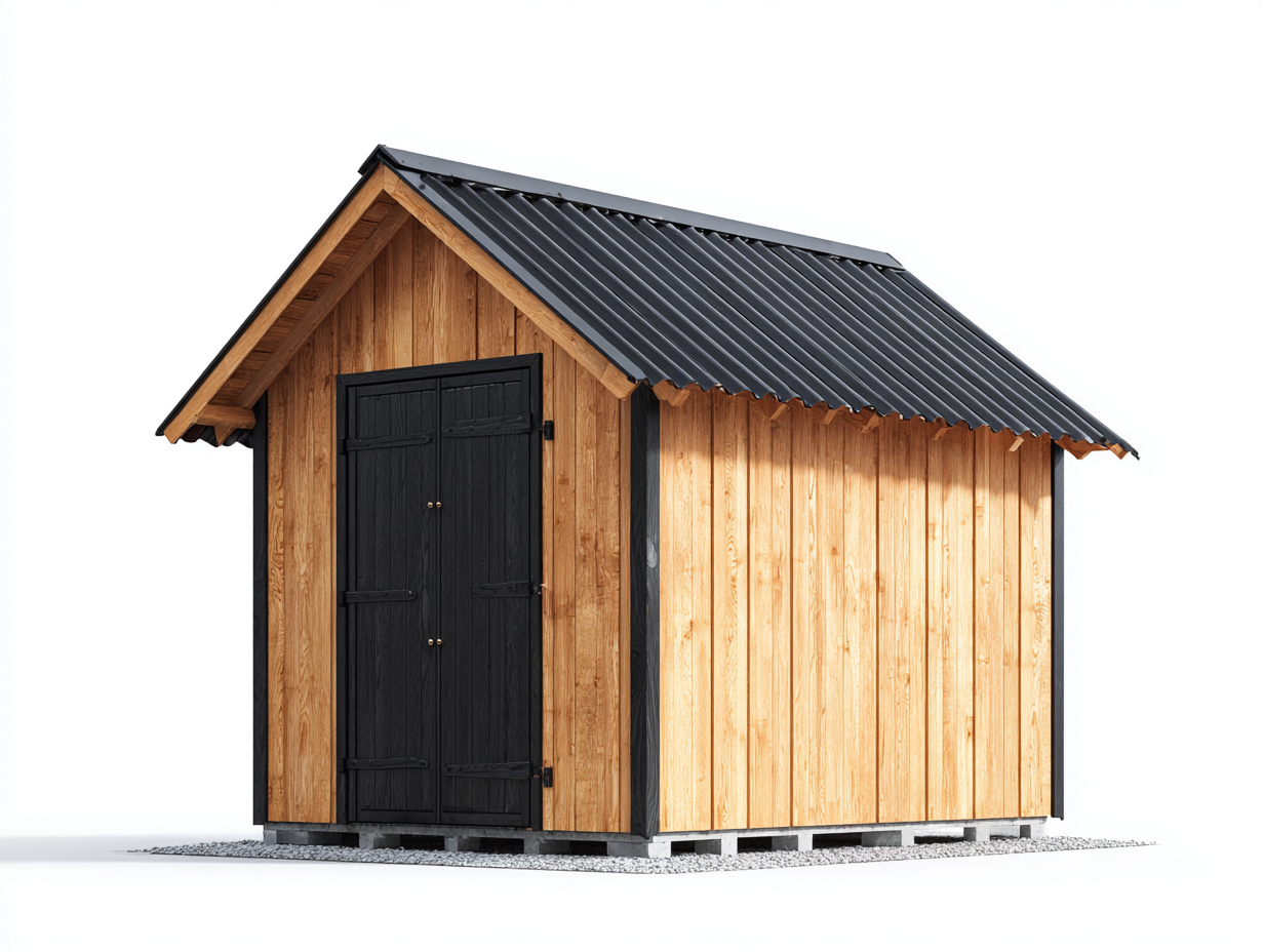 Casetta da giardino-legno-metallo-210x160x220 cm-naturale-nero-stile rustico