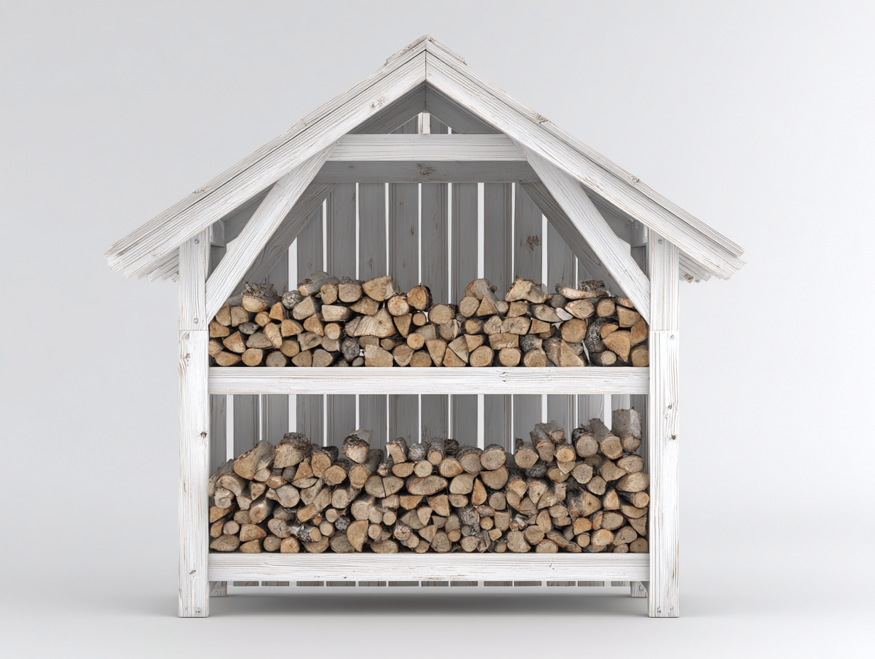 Portalegna-legno-155x45x165 cm-Bianco-stile rustico