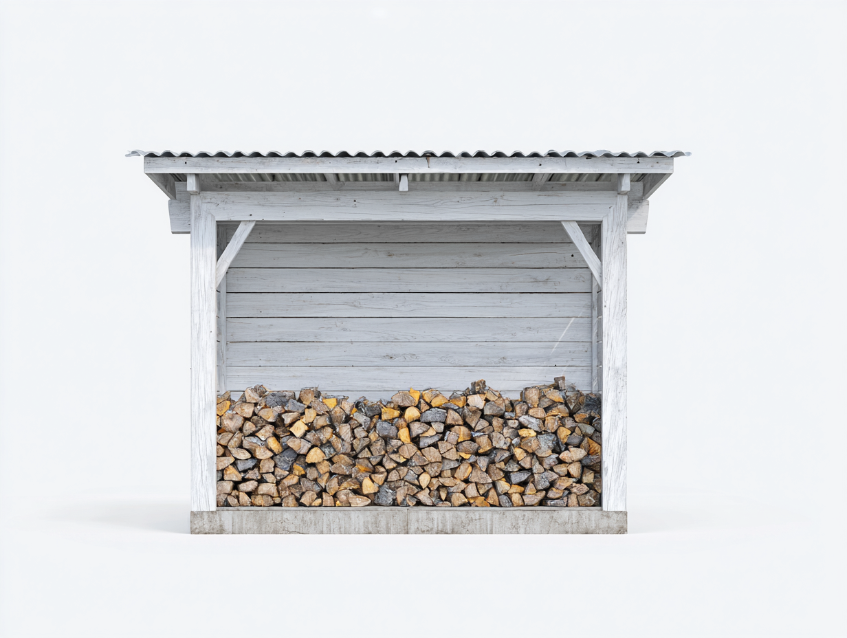 Portalegna progettato per l'organizzazione della legna da ardere con una struttura compatta e funzionale. La configurazione aperta frontale facilita l'accesso e favorisce una corretta circolazione dell'aria, rendendolo adatto a spazi residenziali all'aperto.